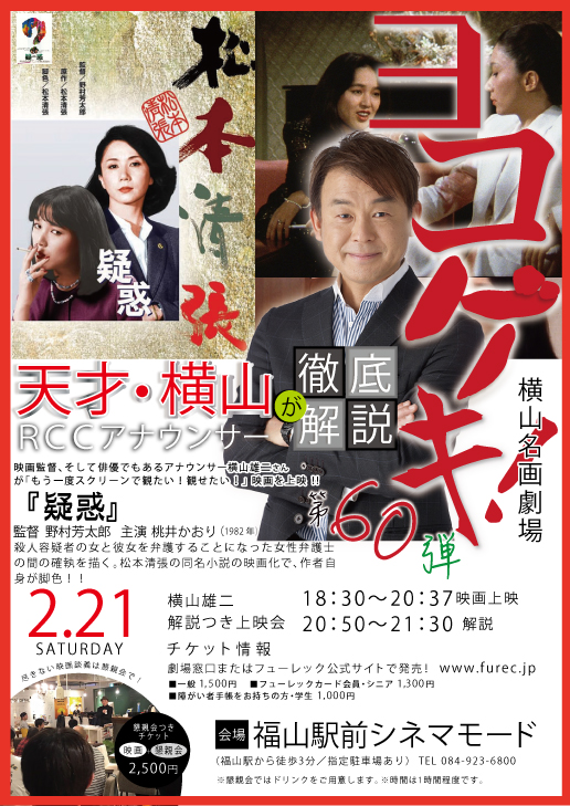 映画監督、俳優としても活躍している人気アナウンサー、横山雄二さんがセレクト&解説する映画イベント。