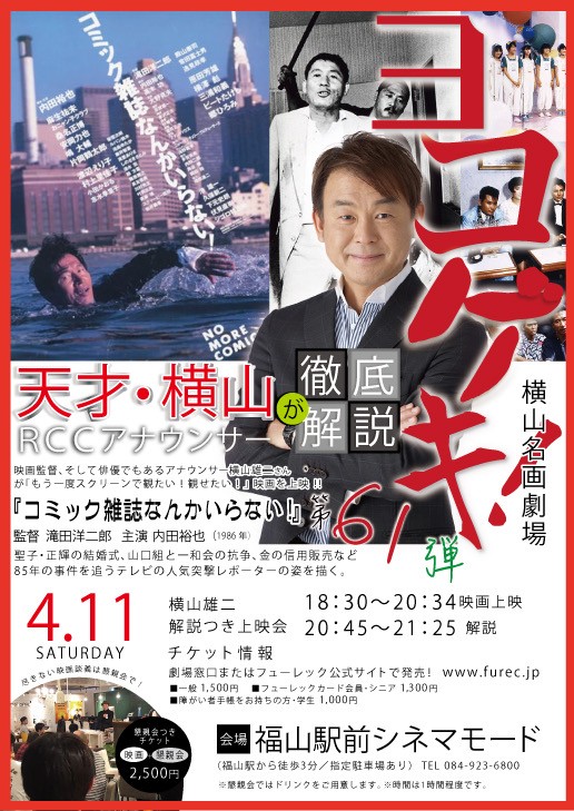 映画監督、俳優としても活躍している人気アナウンサー、横山雄二さんがセレクト&解説する映画イベント。